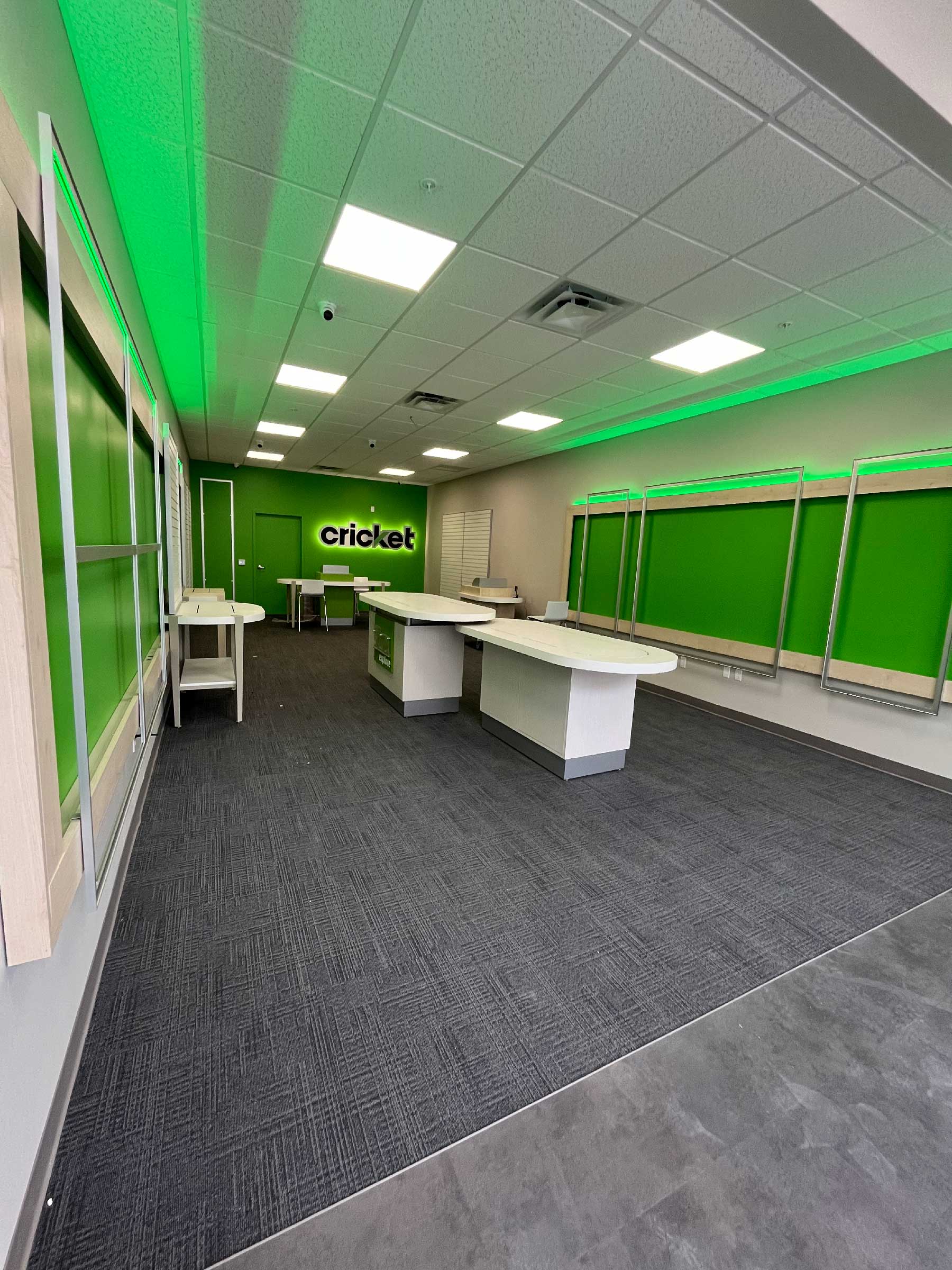 Cricket wireless was a tenant fit out for the commercial chain, in a white box space that Nelcon Inc. previously completed.